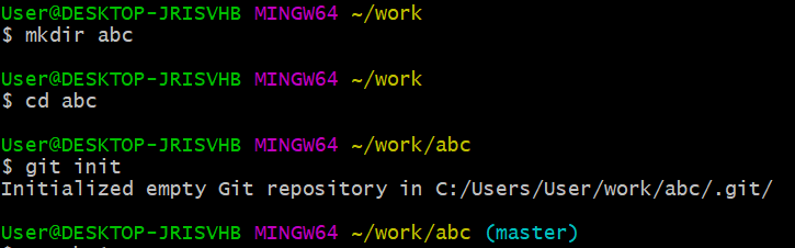 임의 폴더 생성(mkdir) 해당 위치에서 git init