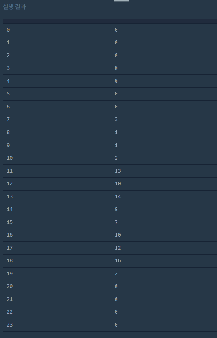 0~23시간 동안 시간 별로 집계된 입양 횟수 조회하기