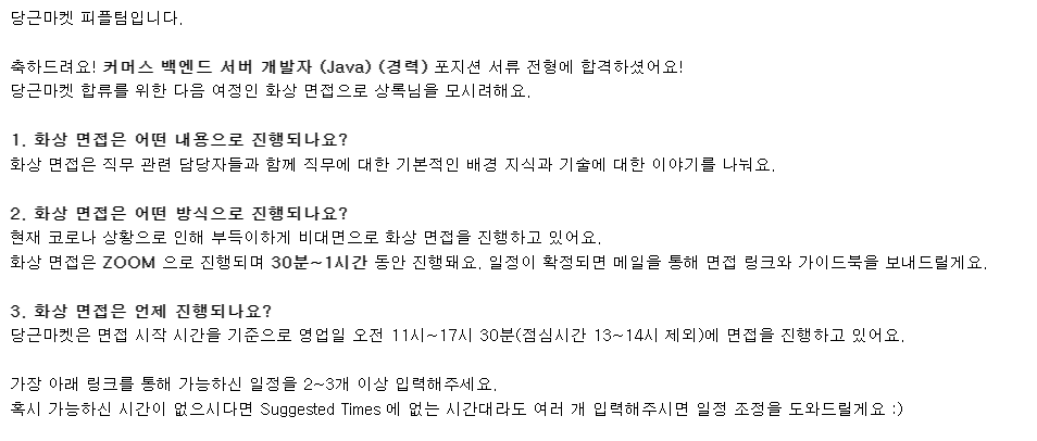 원티드에서 당근마켓 백엔드 직무로 포폴을 넣어봤다.